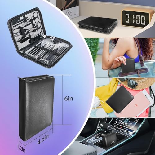 - حافظة جلدية أنيقة ومحمولة - يتم تخزين جميع الأدوات بأناقة داخل حافظة جلدية أنيقة تحميها وتبقيها منظمة. التصميم المدمج يجعل المجموعة سهلة الحمل في حقيبة أو حقيبة سفر للسفر أو رحلات العمل أو الاستخدام اليومي.