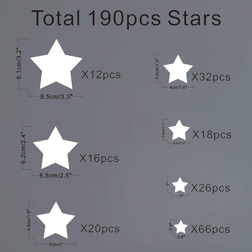 - إجمالي المحتويات: 190 قطعة من ملصقات النجوم، حجم النجوم يتراوح من 2 - .8.5 سم