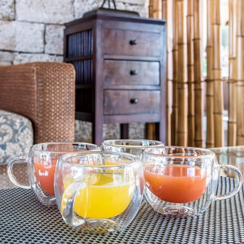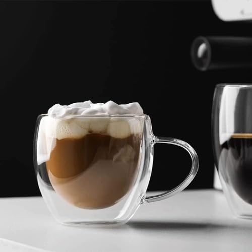 1CHASE - كوب زجاجي معزول بجدار مزدوج مع مقبض سعة 250 مل (مجموعة من 6 قطع) للقهوة والشاي والحليب من ون تشيس