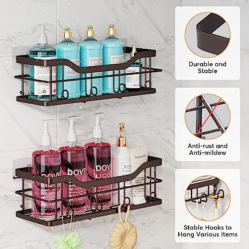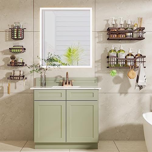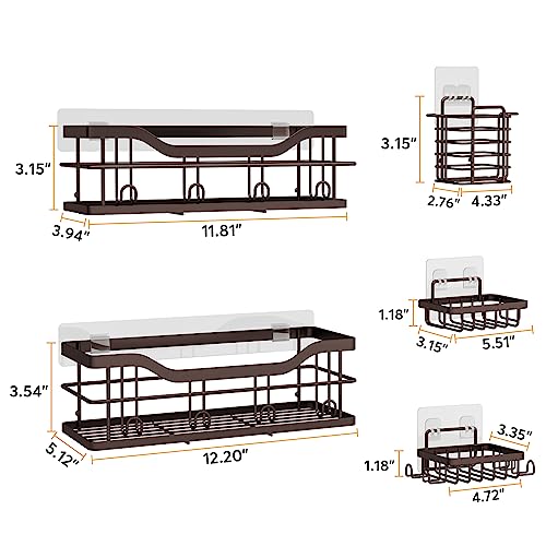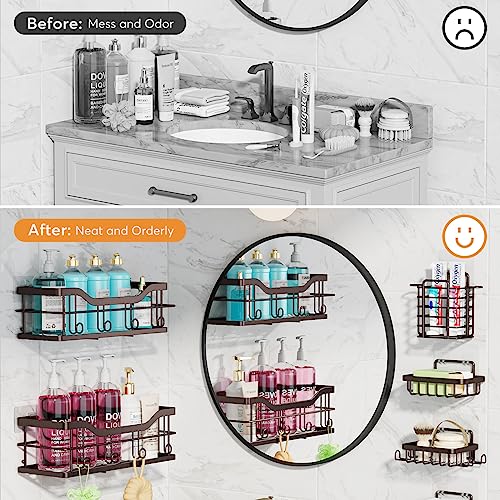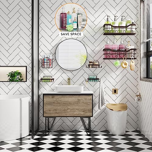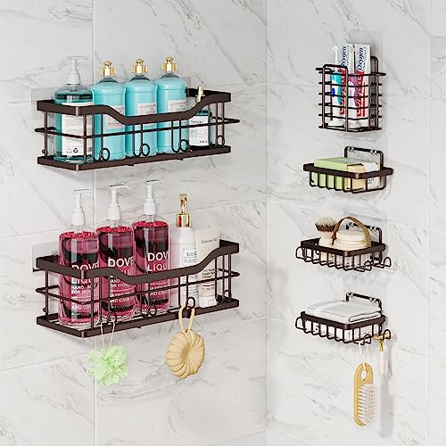 1Easylife - 1 ايزي لايف 6 قطع من حامل الدش بدون ثقب منظم دش الحمام المقاوم للصدا رف مثبت على الحائط مع خطافات الصابون برونزي