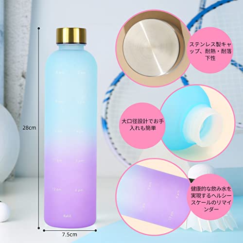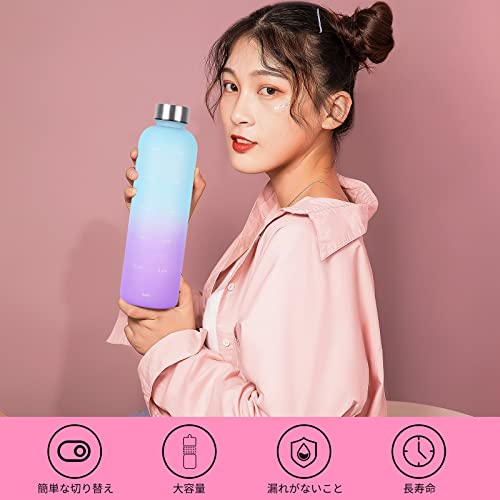 Generic - زجاجة مياه بلاستيكية مع علامات توقيت بتصميم عصري للأنشطة الخارجية مع تدريج وتأثير رملي، نمط رياضي بسيط للتسلق والتخييم والاستخدام في الهواء الطلق، 1 ل