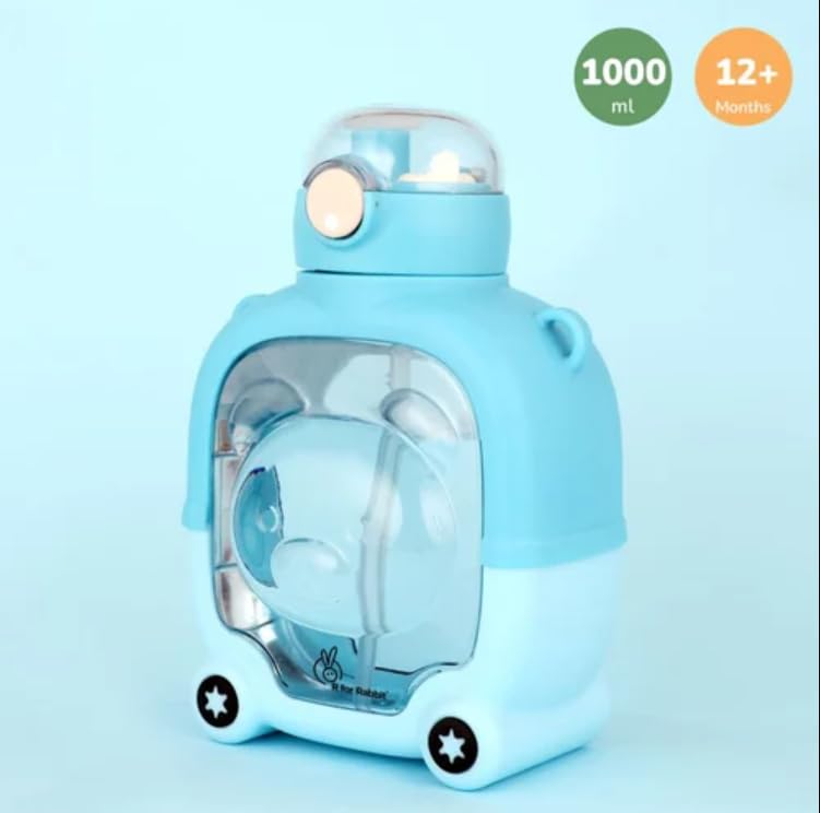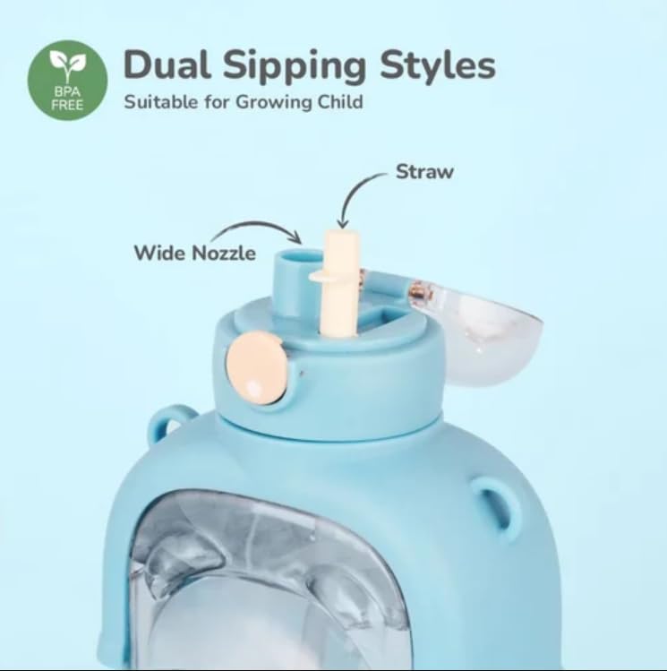 Generic - زجاجة بشفاطة مزدوجة وحزام سعة 1 لتر - للبنات والأولاد والنساء (أزرق)، بلاستيك