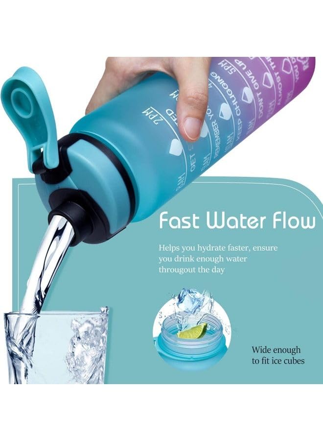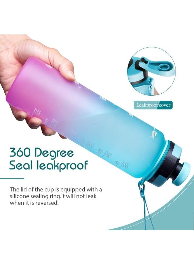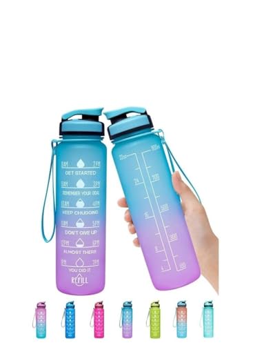 generic - زجاجة مياه كبيرة سعة 1 لتر مع علامات زمنية تحفيزية بلون ازرق/بينك