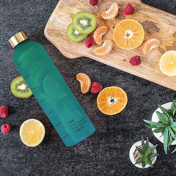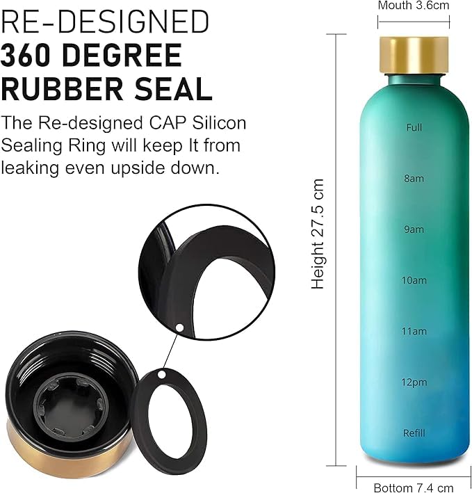 Generic - زجاجة مياه تحفيزية بسعة 1 لتر مع علامة وقت للشرب، زجاجة بلاستيكية قابلة لإعادة الاستخدام مع مادة تريتان خالية من مادة BPA للصالة الرياضية والرياضة لون ازرق