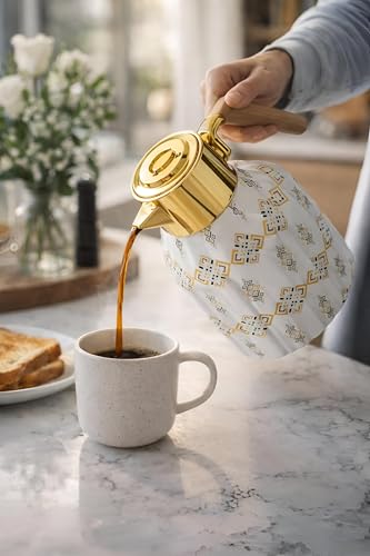 - صُنعت من فولاذ مقاوم للصدأ مزدوج الجدار عالي الجودة وتقنية العزل بالتفريغ مما يضمن احتفاظاً فائقاً بالحرارة ومتانة مع منع التكثيف الخارجي للحصول على قبضة جافة ومريحة.