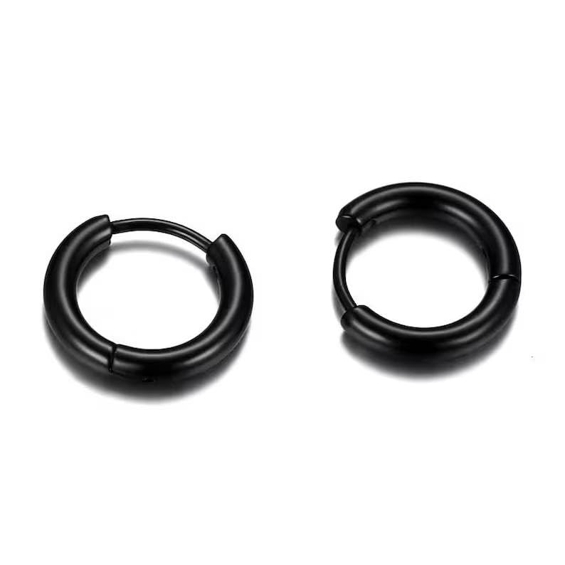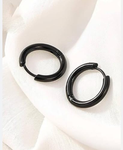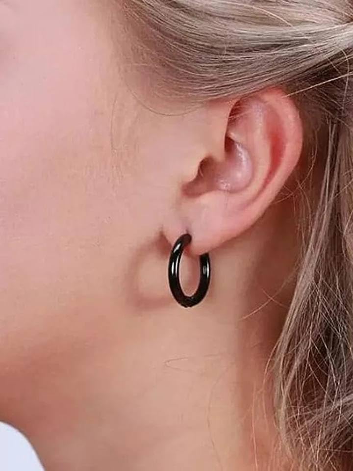 Generic - زوج واحد من اقراط حلقية متوسطة الحجم بلون اسود للنساء والفتيات، مشبك اذن عالي اللمعان، هدايا مجوهرات كلاسيكية بسيطة