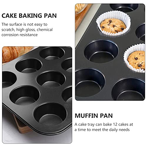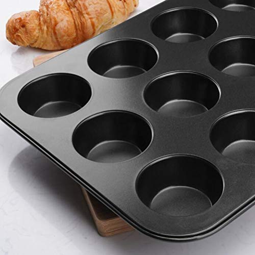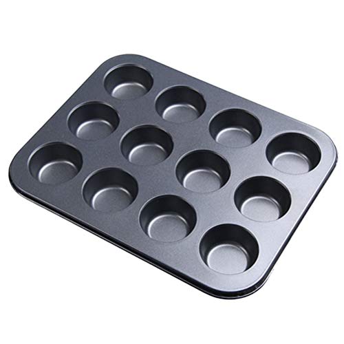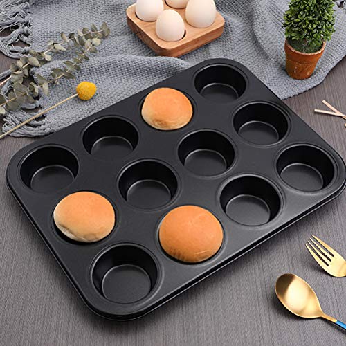 Generic - صينية مافن عملية غير لاصقة مكونة من 12 كوب، أداة خبز للكب كيك، أسود، قطعة واحدة