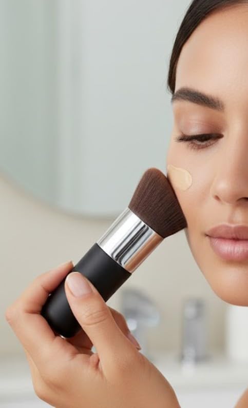 - أ. فرشاة المكياج: فرش كريم الأساس ناعمة وكثيفة وحريرية، مما يوفر لك شعورًا مريحًا وسلسًا؛ يمكن استخدام الفرشاة لوضع بودرة الأساس وأحمر الخدود وكريم الأساس السائل وكريم الأساس الكريمي، فهي جيدة لجعل كريم الأساس الخاص بك يبدو لطيفًا ورائعًا.