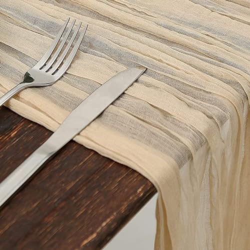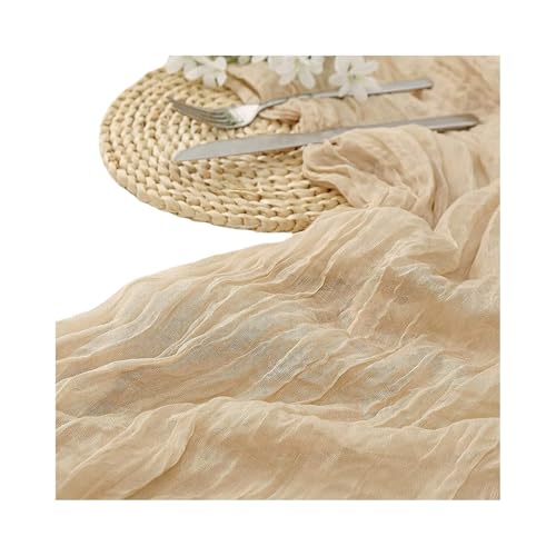 - قماش ناعم وانسيابي: مصنوع من شاش البوليستر خفيف الوزن، يتميز مفرش الطاولة هذا بملمس مجعد رقيق يعزز سحره الريفي، لمظهر أنيق عند تناول الطعام أو على طاولات المناسبات.