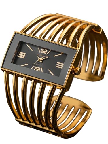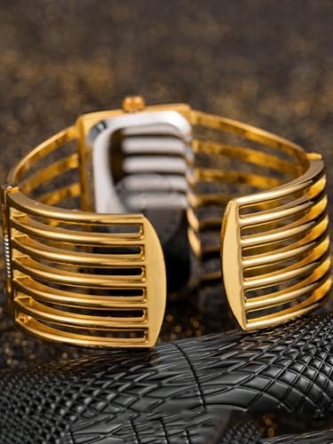 Generic - ساعة للنساء بمينا سوداء وسوار ذهبي، عرض مقياس مختلط، تصميم كلاسيكي عصري مناسب للاستخدام اليومي
