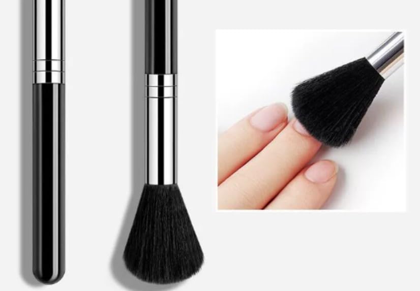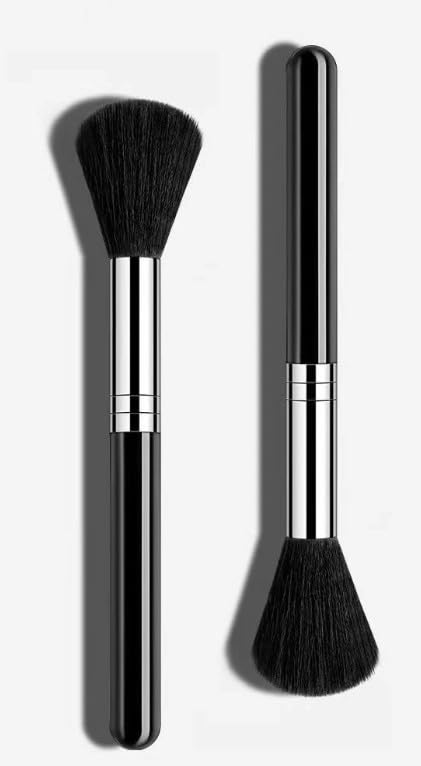 Generic - فرشاة مكياج وفرشاة بودرة خدود من الياف ناعمة ومتعددة الوظائف للمكياج اليومي - قطعة واحدة - اسود وفضي - قطعة واحدة