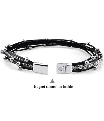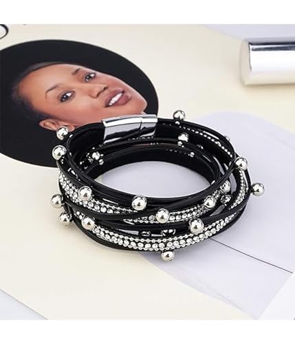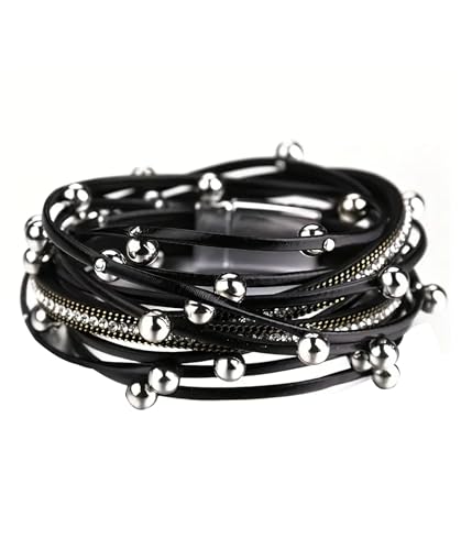 fashion mania - سوار من الجلد الصناعي متعدد الطبقات للرجال والنساء، سوار طويل ملفوف مزدوج بتصميم انيق