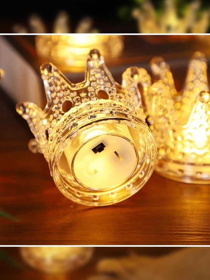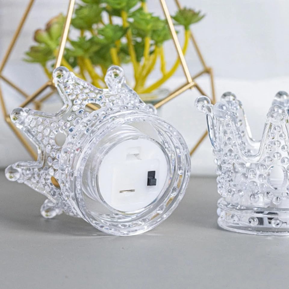 Generic - شمعة LED بلاستيكية بدون لهب بتصميم تاج ابداعي بدون لهب للمنزل من قطعة واحدة، شفاف
