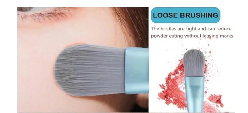 Generic - فرشاة مكياج قصيرة لكريم الاساس وفرشاة احمر الخدود وبودرة الخدود، الياف ناعمة ومتعددة الوظائف للمكياج اليومي - قطعة واحدة - لون ازرق فاتح