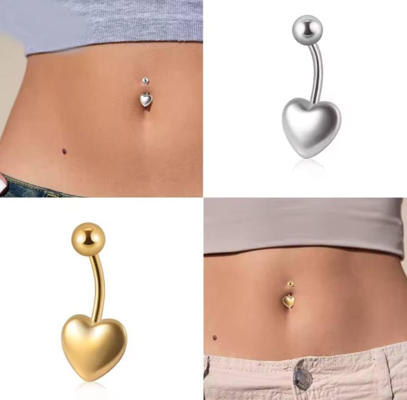 Generic - قطعة واحدة من اقراط الحب البسيطة من الستيل للسرة بتصميم شخصي على شكل قلب، حلقة اظافر ناعمة