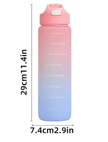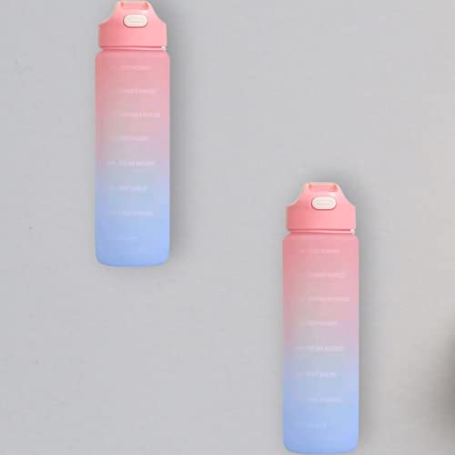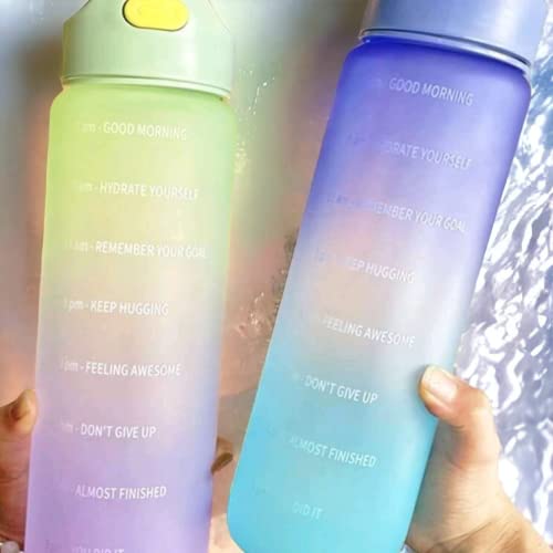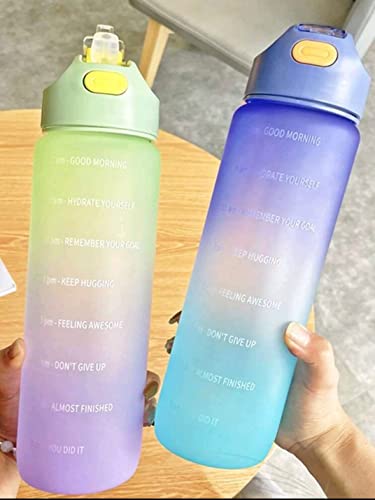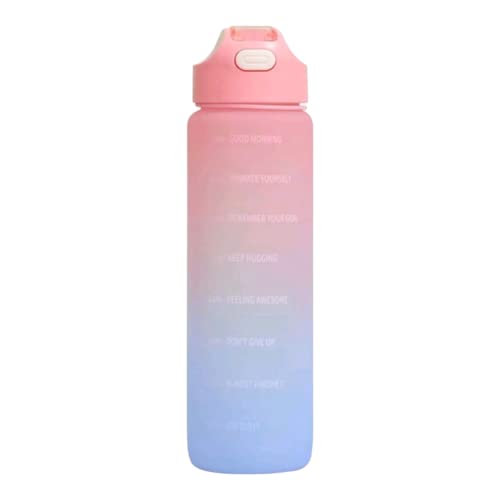Generic - زجاجة مياه بسعة كبيرة بلون متدرج عشوائي مع عبارات تحفيزية، زجاجة مياه رياضية مع غطاء قافز ومقياس زمني لتتبع كمية الشرب، سعة 1 لتر، قطعة واحدة