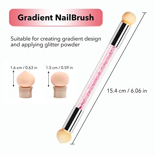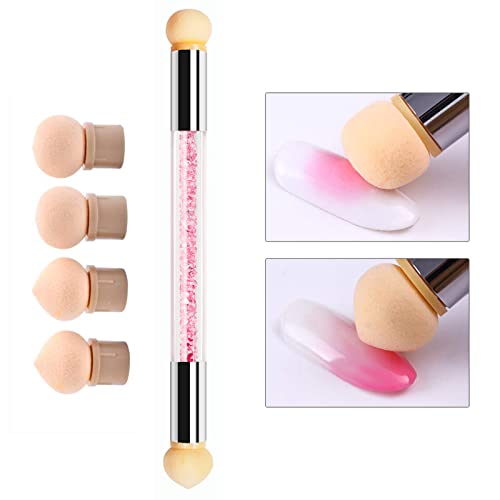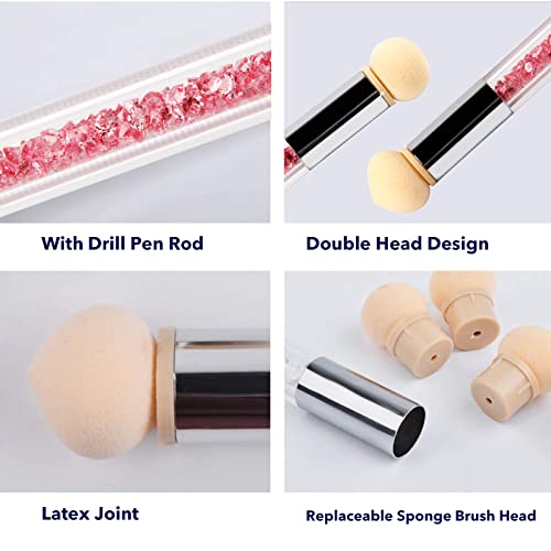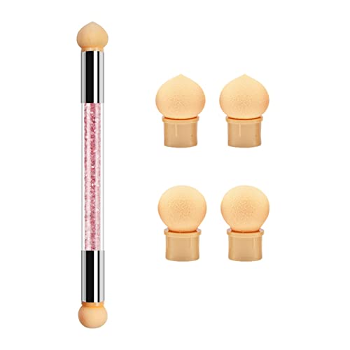Generic - فرشاة اظافر باسفنجة مزدوجة ومقبض اكريليك مرصع باحجار الراين، مناسبة لصنع النقاط وطلاء اظافر بلون متدرج مع 4 رؤوس بديلة، قطعة واحدة