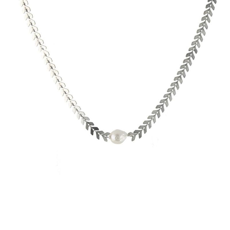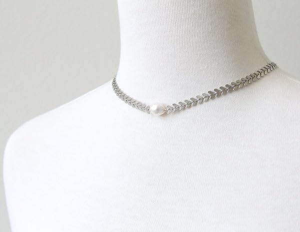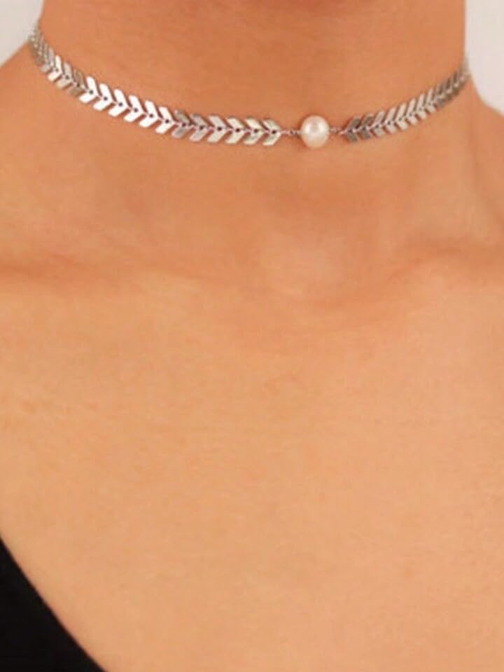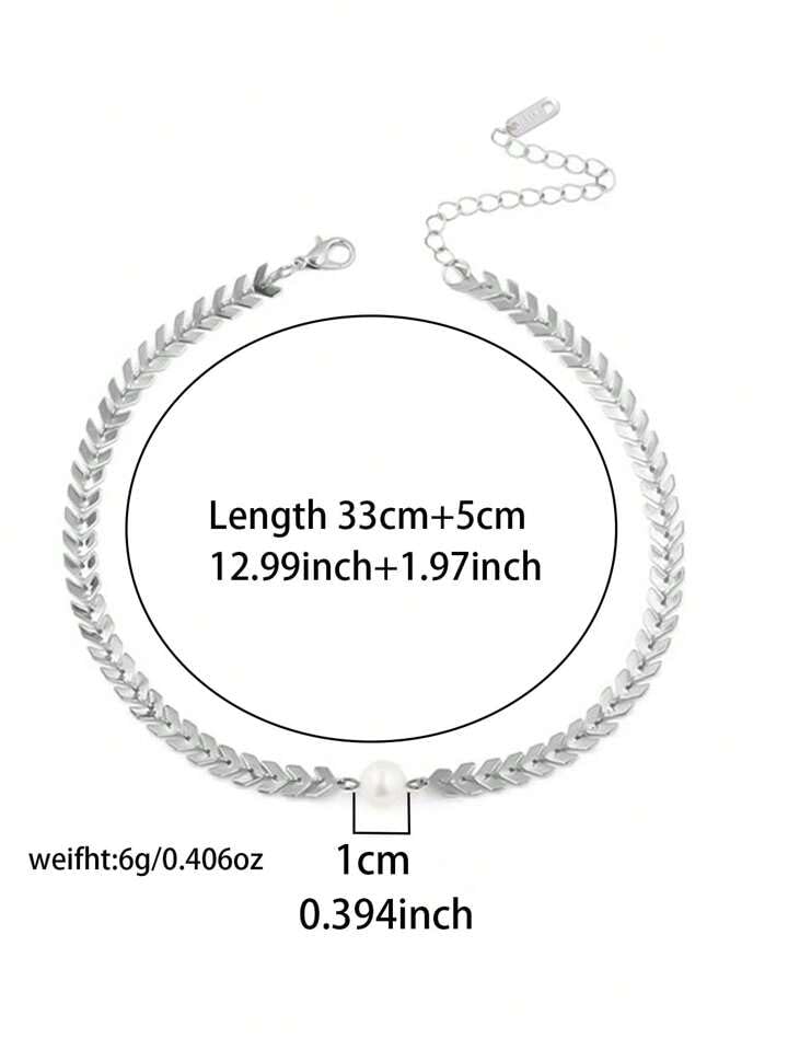 Generic - سلسلة رقبة من الستانلس ستيل بتصميم بسيط من القمح واللؤلؤ الصناعي للنساء من قطعة واحدة
