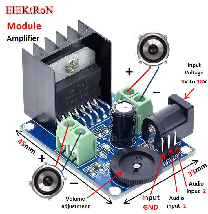 - عدد قطعة واحدة من موديول مضخم صوت Super Mini Digital Audio Amplifier 5-15W Stereo Dual Channel Class D TDA7266 TDA-7266 TDA 7266 TDA726 TDA72 Efficient 3 to 18V Board Module TDA7266 Module Audio Power Amplifier Module 5-15W Input : DC 3V -- 18V stereo Audio Amplifier Board Module