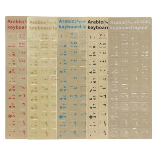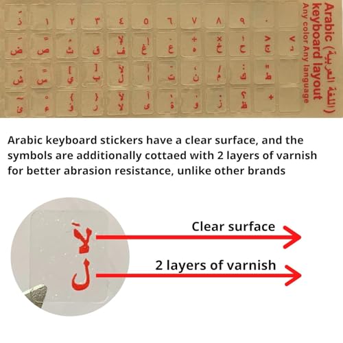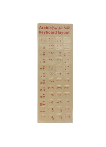 Generic - ستيكر شفاف للوحة المفاتيح باللغة العربية لجهاز الكمبيوتر المكتبي بحروف عربية فقط بلون أبيض مع خلفية شفافة - قطعة واحدة - أحمر 3