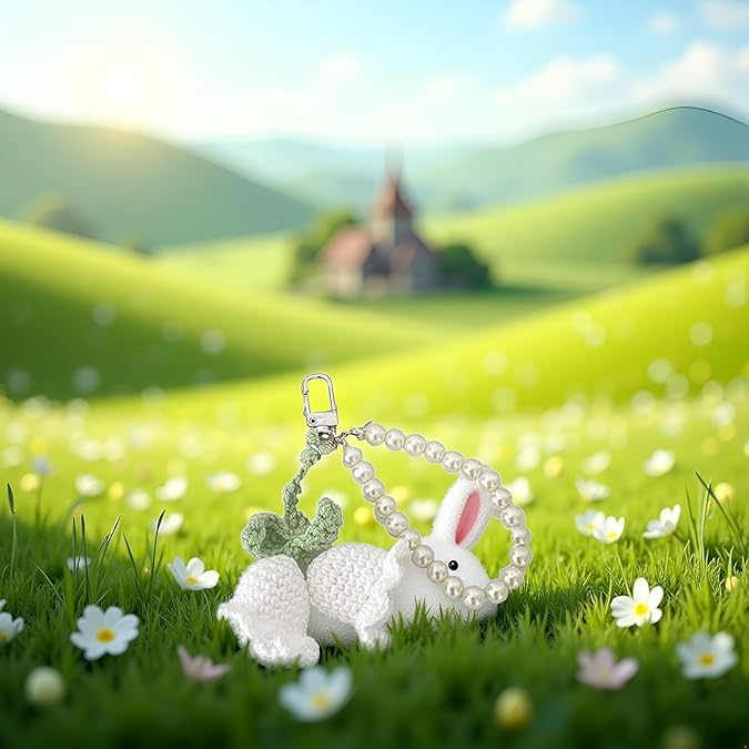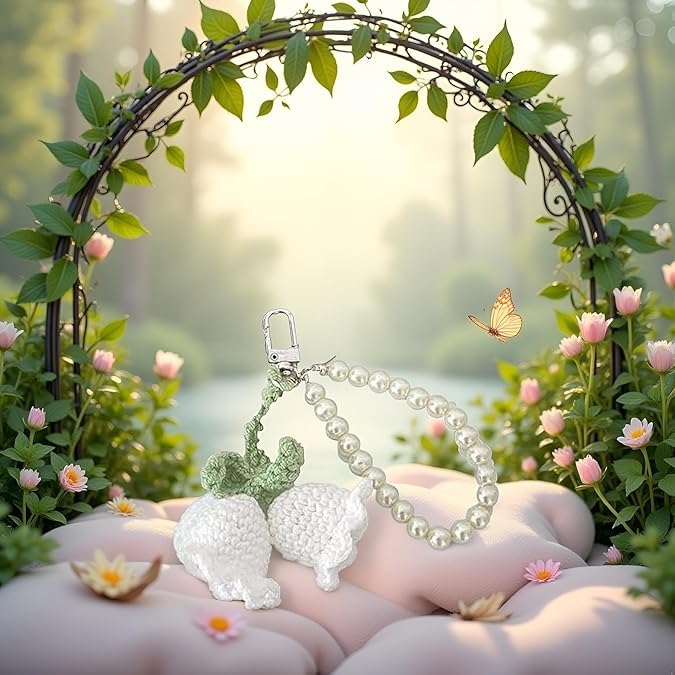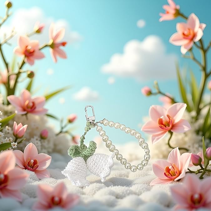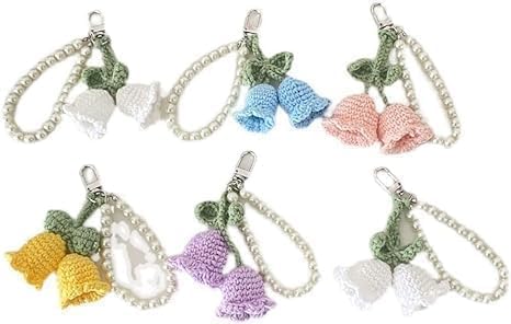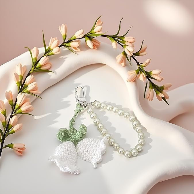 Cldaisy - سلسلة مفاتيح ابداعية من اللؤلؤ الابيض مع دلاية محبوكة على شكل زهرة محبوكة على شكل جرس اوركيد، سلسلة مفاتيح متدلية من اللؤلؤ، سلسلة مفاتيح زينة مريحة للحمل، اكسسوارات، سلاسل مفاتيح ودلايات