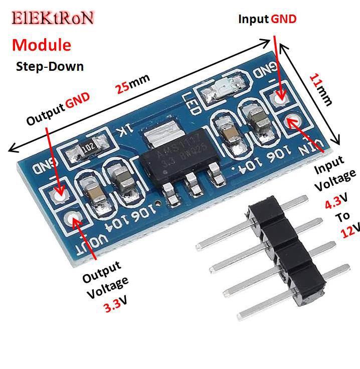- 1 قطعة محول تيار مستمر منظم الجهد الكهربائي AMS1117 AMS 1117 AMS111 AMS11 3.3 فولت وحدة امدادات الطاقة AMS1117 3.3 فولت وحدة 800 مللي أمبير الإدخال: تيار مستمر 4.3 فولت -- جهد الخرج الثابت 3.3 فولت يجب أن يكون جهد الإدخال أعلى من جهد الخرج إلى 1 فولت أو أكثر يجب ألا يتجاوز تيار الحمل 800MA MA MA