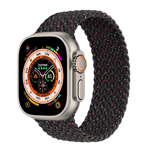 Generic - سوار قماشي مطاطي مضفر مقاس 49/45/42/44 مم لساعة ابل 8/1/2/3/4/5/6/7 L اسود متعدد للكبار من الجنسين