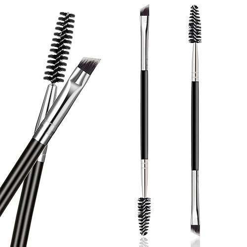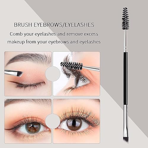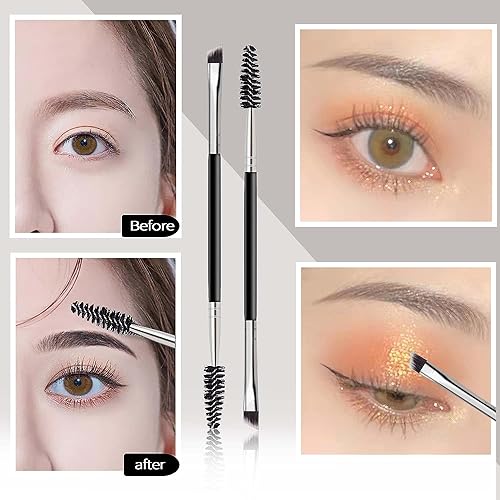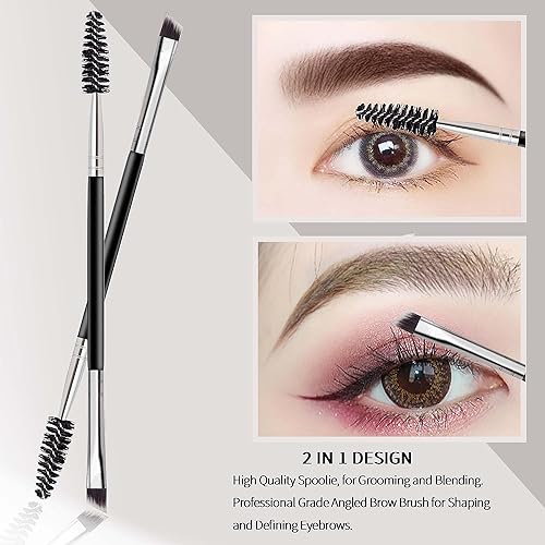 FUIN - فرشاة حواجب مزدوجة مائلة وفرشاة سبولي، فرشاة حواجب احترافية بزاوية وفرشاة سبولي، فرش رموش صغيرة متعددة الوظائف لتمديد الرموش وتطبيق المكياج الدقيق