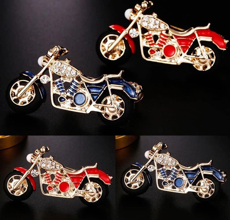 Generic - دبوس بروش بشكل موتوسيكل أنيق بلون ذهبي ومينا أزرق، مجوهرات إكسسوار لياقة البدلة للبنات والأطفال، قطعة واحدة، أزرق وذهبي, معدن