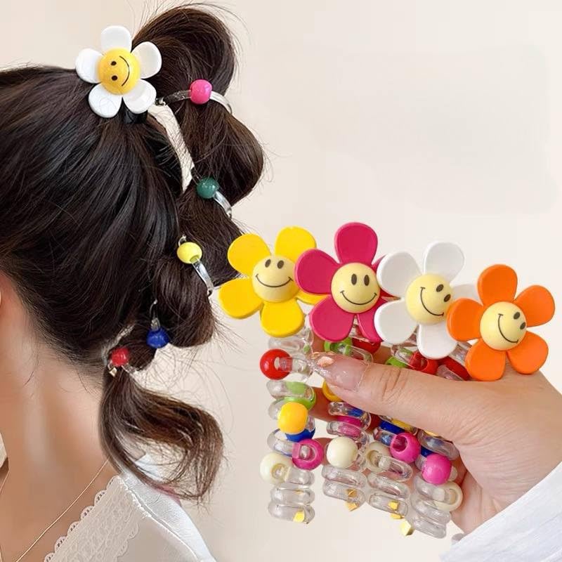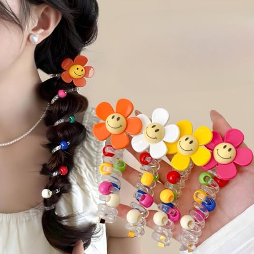 - حبل شعر ذيل الحصان، شريط مطاطي غطاء الرأس للأطفال، 1 قطعة جديدة جميلة مطرزة بالزهور الكبيرة حبل رأس حلزوني