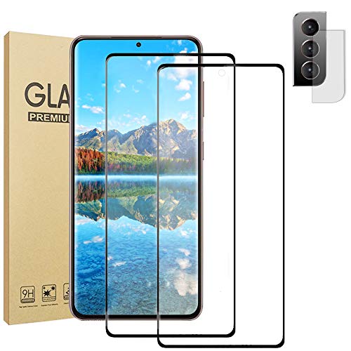 LETANG - شاشة حماية لموبايل جالاكسي S21+ &&& S21 بلس شبكة الجيل الخامس 5G + واقي عدسة الكاميرا مستقيمة بدرجة صلابة 9H تدعم بصمة الاصبع HD عالية الدقة سامسونج S21 5G 6.7 بوصة شفاف