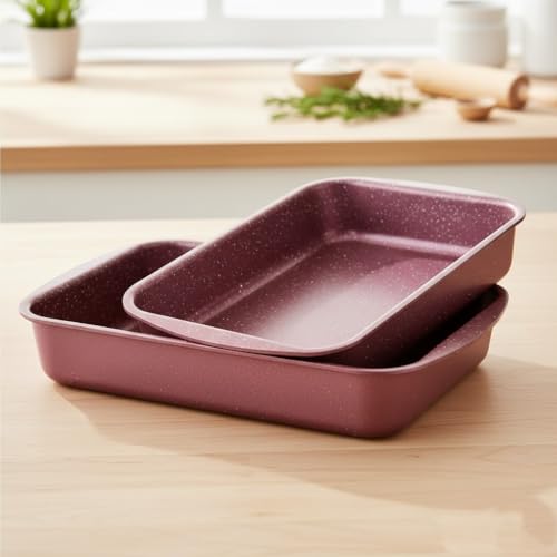 - طقم صواني فرن مكوّن من قطعتين بمقاسين 28 و30، يوفّر مرونة كبيرة لتحضير الأطعمة حسب الكمية المطلوبة.
