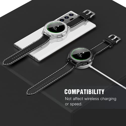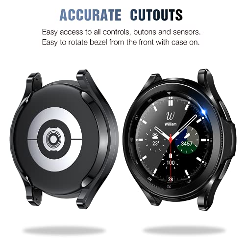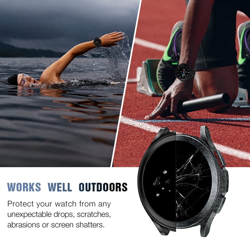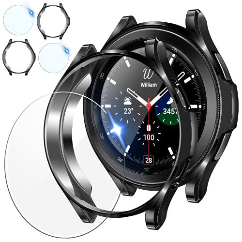 Generic - جراب حماية شاشة كلاسيكي لسامسونج جالاكسي 4، قطعتي زجاج مقوى بغشاء واقي وقطعتين من مجموعة اكسسوارات غطاء الساعة الممتص للصدمات من البولي يورثين الحراري (مقاس 46 ملم، بلون اسود) من تينسيا، [2+2 عبوة]