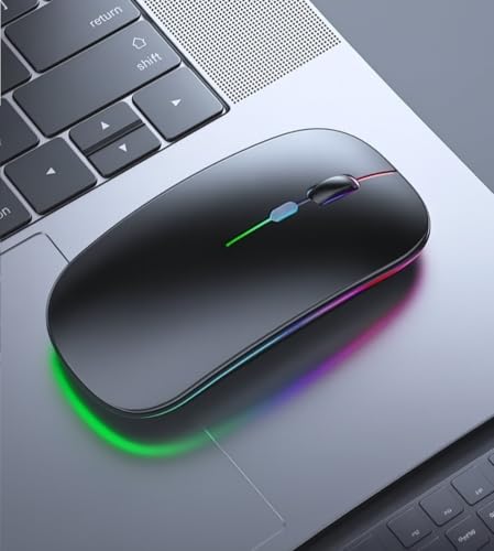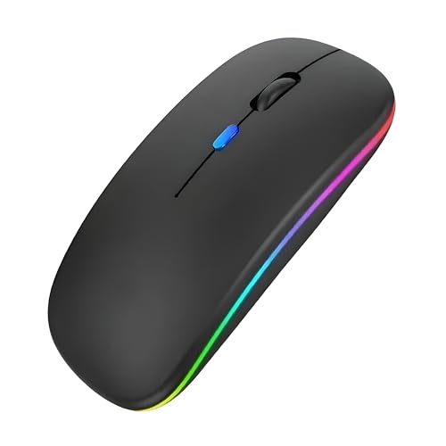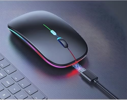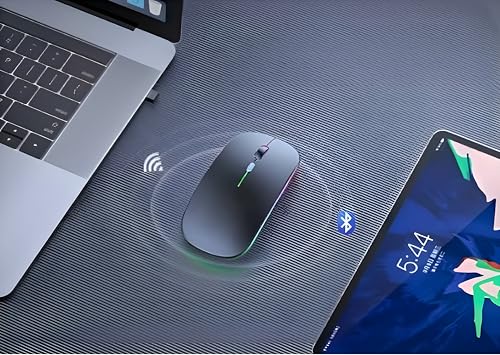 Generic - ماوس لاسلكي W10 مزدوج الاتصال بلوتوث + 2.4 جيجاهرتز بدقة 1600 نقطة لكل بوصة ومدى اتصال لاسلكي 10 م وإضاءة ار جي بي