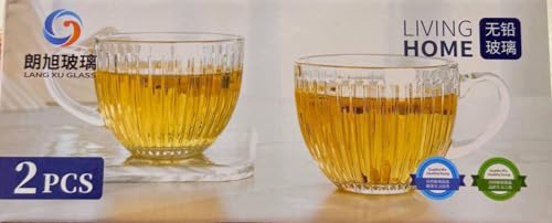 Generic - طقم بولة شوربة مصنوعه من الزجاج عالى الجودة – مكون من قطعتين ، سعة 460 مل (شفاف مضلع)
