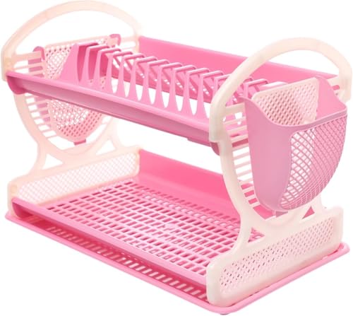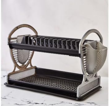 Generic - رف أطباق مصنوع من البلاستيك، متعدد الألوان، مناسب لأواني المطبخ وأدوات المائدة، مزود بصينية تجميع المياه وحامل ملاعق جانبي وتصميم طبقتين، مقاس 51 × 28 × 33 سم