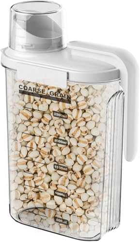 Generic - علب تخزين طعام شفافة بسعة 2.5 لتر مع غطاء كوب قياس ومقبض سكب سهل لتنظيم الحبوب والبقوليات والدقيق والسكر والحفاظ على مطبخ مرتب