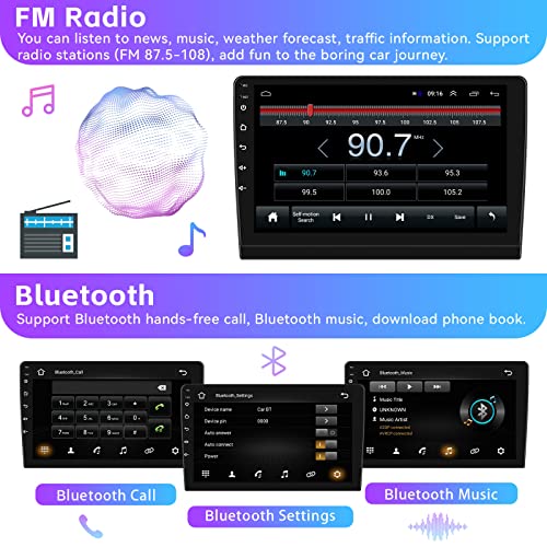 - 【بلوتوث وراديو اف ام ار دي اس】يدعم البلوتوث المكالمات الواردة والصادرة/مزامنة دفتر العناوين/يدعم تشغيل الموسيقى عبر الهاتف المحمول. يمكنك الاستماع إلى الأخبار والموسيقى وتوقعات الطقس ومعلومات حركة المرور. يدعم محطات الراديو (اف ام 87.5-108)، أضف المرح إلى رحلة السيارة المملة.