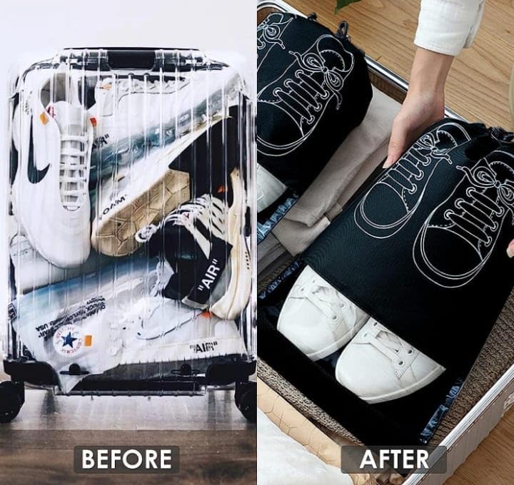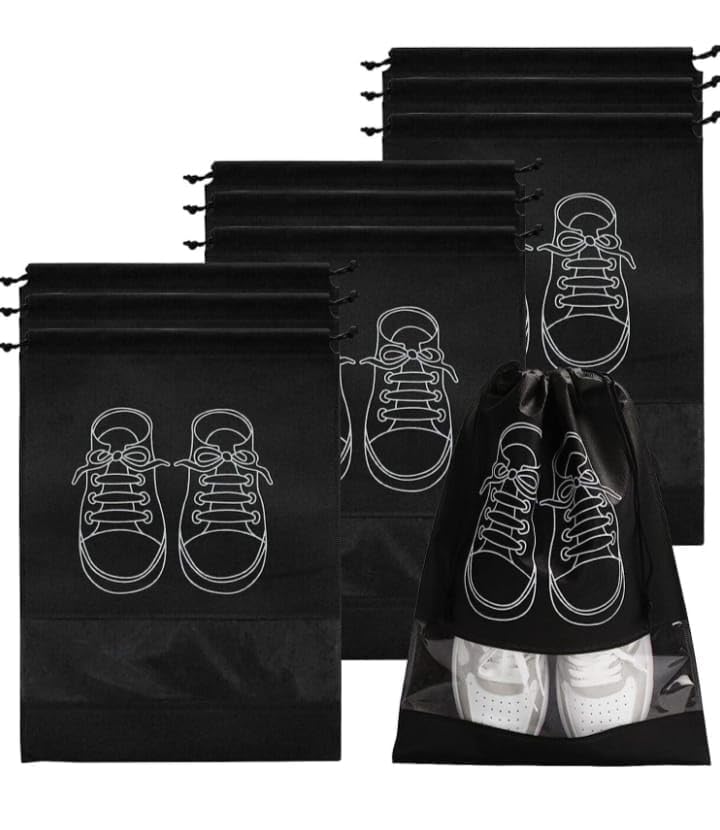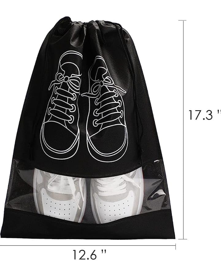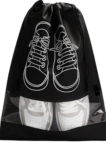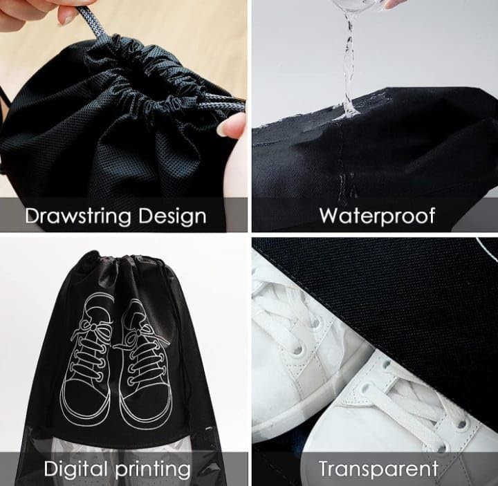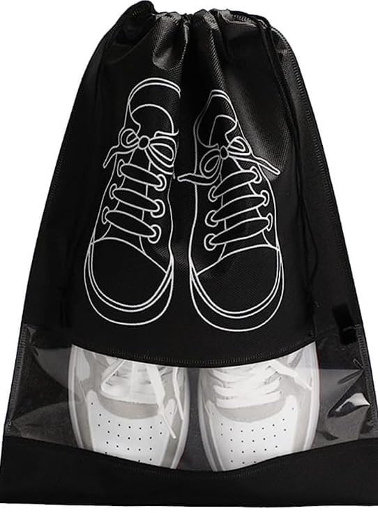 Generic - شنطة أحذية للسفر مقاومة للماء والغبار بفتحة نافذة شفافة وإغلاق برباط للجيم والسفر، لون أسود، قطعتين