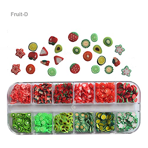 Mezerdoo - زينة اظافر زخرفية بتصميم فاكهة للاظافر ملصقات سلايم ثلاثية الابعاد لتزيين الاظافر قطع صغيرة ملونة بنمط تفاح وكيوي وفواكه الموز والليمون والفراولة للحرف اليدوية وتزيين الموبايل