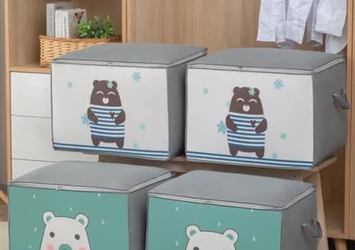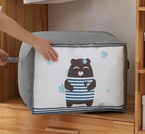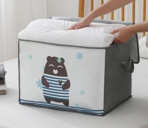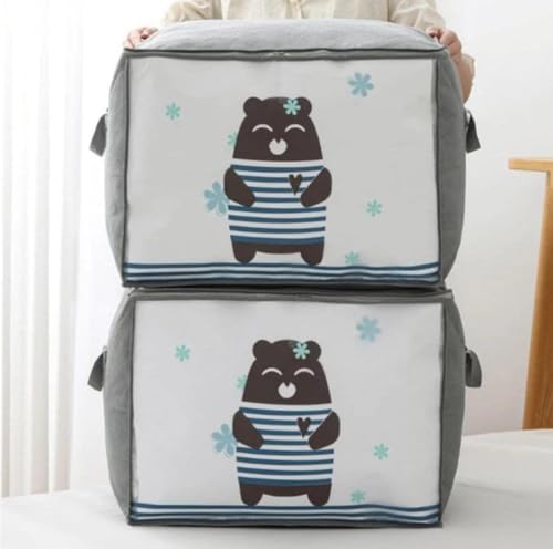 Generic - شنطة تخزين بطانية وملابس محمولة قابلة للطي بسوستة وطبعة شخصيات كرتونية، 2 شنطة، بيج داكن / تان