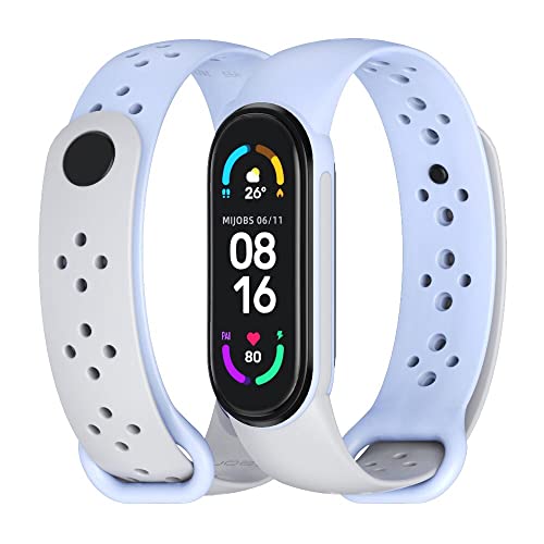 Generic - سوار ساعة بديل من السيليكون 2 لون لساعة شاومي مي باند 7 ، اكسسوار للساعة الذكية رمادي وازرق فاتح للبالغين من الجنسين