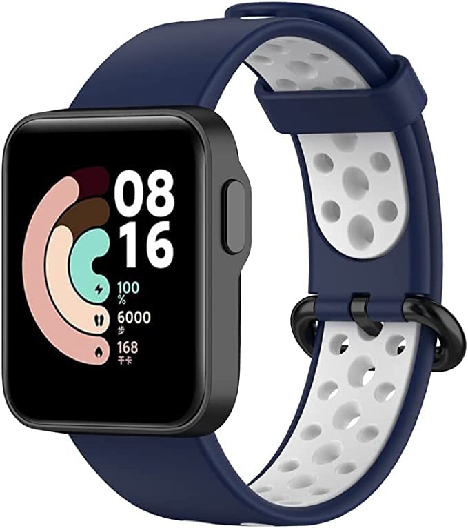 Generic - سوار ساعة بديل من لونين مع فتحات تهوية انيقة متوافق شاومي 2 لايت - ريدمي ووتش ازرق وابيض للكبار الجنسين