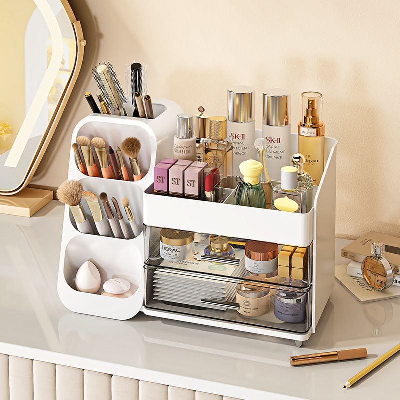 - تصميم مدمج: حجم مثالي لطاولة التسريحة مع ترتيب ذكي يوفر أقصى مساحة تخزين في أقل حيز ممكن