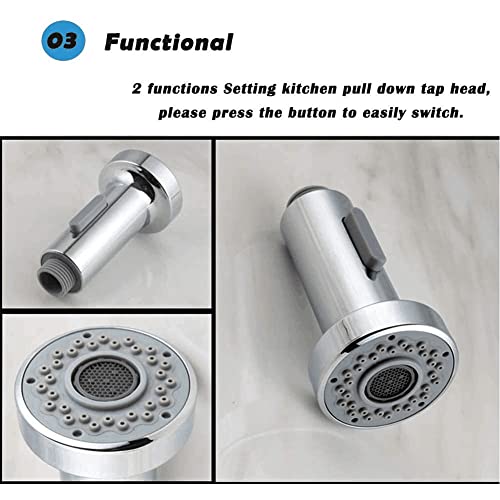 - إصدار مطور، لقد أضفنا فلتر لإطالة عمر الخدمة. هيكل بلاستيكي متين يوفر رأس الرش أداءً موثوقًا به وطول العمر. أفضل خيار لاستبدال رأس صنبور المطبخ القابل للسحب