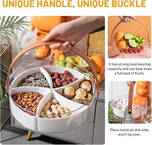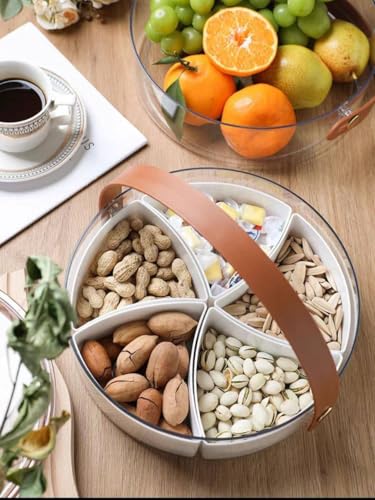 Generic - طبق تقديم أكريليك بتصميم شبيه الجلد 2 في 1 مقسم للمكسرات والفواكه والحلويات بمقبض أنيق سهل الحمل مثالي للضيافة والاستخدام اليومي في المطبخ العربي
