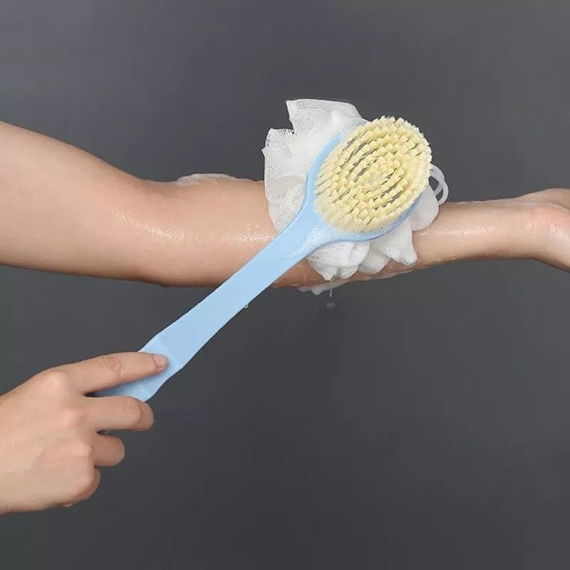 - تصميم 2×1 مزدوج الاستخدام: جانب بفرشاة لتنظيف عميق، وجانب بليفة ناعمة لتدليك لطيف