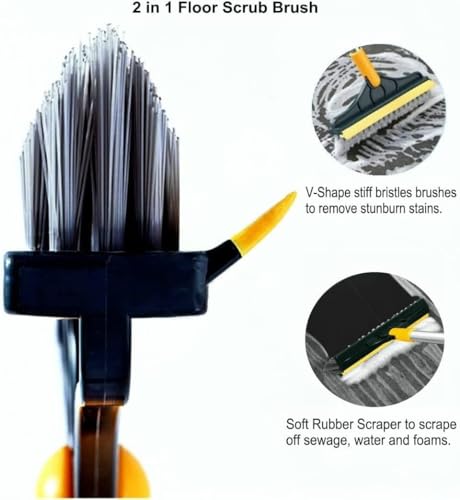 Generic - فرشاة تنظيف الحمام 2 في 1، مثالية لتنظيف البلاط والأرضيات، تصميم متين مع مقبض طويل وقابل للتدوير بزاوية 120 درجة، لتنظيف الحمام والمطبخ بسهولة، أداة متعددة الاستخدام