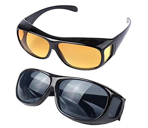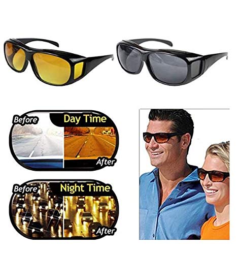 Other - 2 في 1 نظارات الرؤية الليلية للرجال والنساء لتخفيف وهج الضوء أثناء القيادة وتوفير رؤية واضحة بدقة HD الليل والنهار قطعتين متعدد الألوان