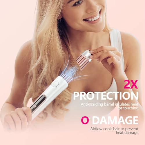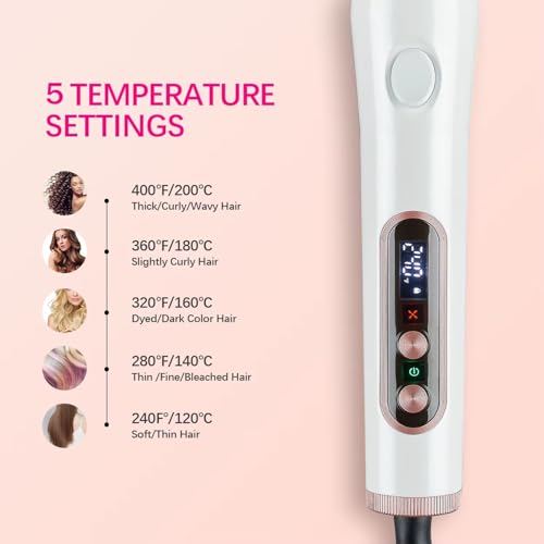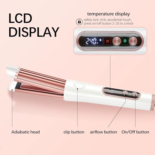 Generic - مكواة شعر سيراميك 2 في 1 للفرد والتجعيد مع تقنية الهواء البارد، شاشة LCD، 36 واط، 120-200 درجة مئوية، أبيض وذهبي وردي